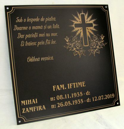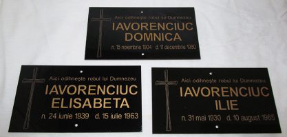 - Realizăm plachete funerare şi obiecte de cult gravate.