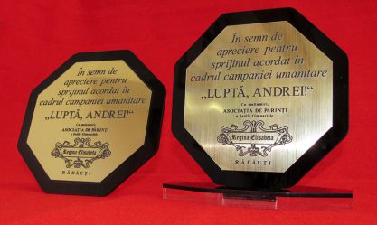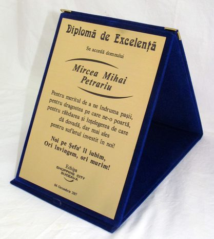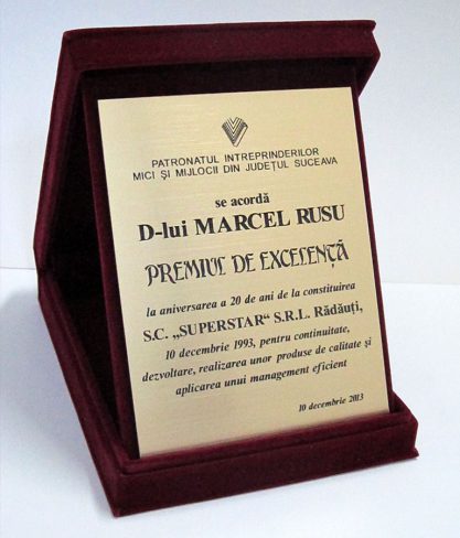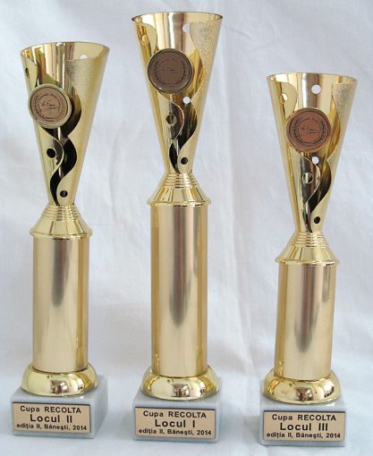 - Personalizarea cupelor se face cu plăcuțe gravate montate pe suportul sau corpul cupei sau prin gravare direct pe suport.